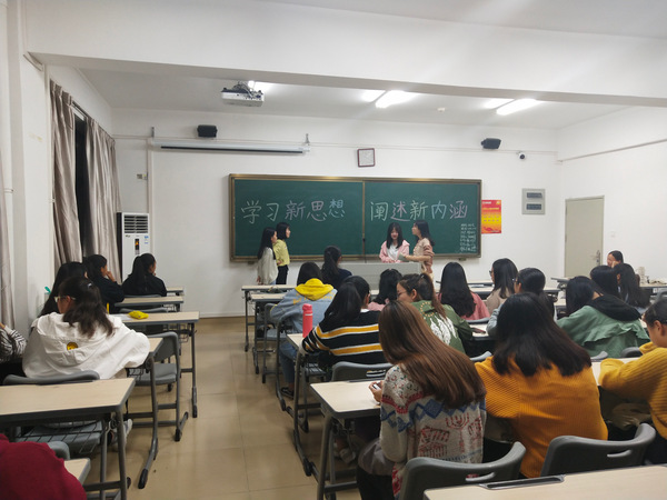 在本次主题班会中,各班主持人带领同学们学习习近平新时代中国特色社会主义思想,深刻理解新思想内涵并落实于行动中。2018级学前教育专业(2)班的同学表演了小品《十九大那些事》,让全班同学在幽默的氛围下分析十九大的核心观点。2016级学前教育专业(2)班的部分同学则以歌唱的方式唱响“新思想,新中国”,使同学们意识到学习新思想的重要性。2018级特殊教育专业(1)班的主持人则带领同学们玩起了以新思想相关内容为参考词汇的“你画我猜”游戏,活动现场,同学们持续参与,收获颇丰。