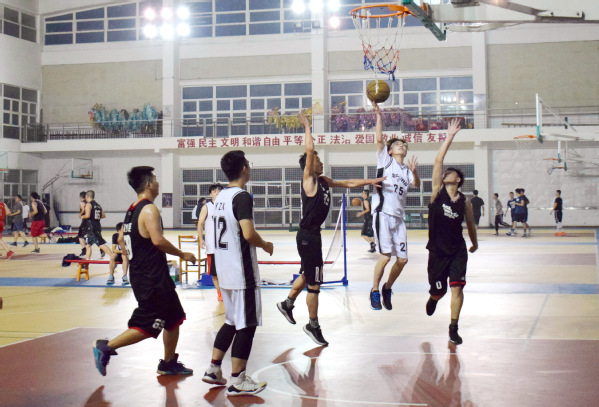 6月13日晚上,教育科学学院于陈伟利体育馆召开毕业生篮球赛。本次比赛由大一和大三学生组成的白队和大四毕业生组成的黑队进行比赛。