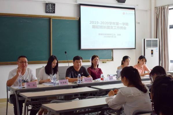 9月1日下午,教育科学学院在特教大楼召开2019-2020学年第一学期班长团支工作例会。教育科学学院学工办副主任、团委副书记林翠玲、团委老师张甲玉、杨碧敏、陈宸、林美玲、吴雅文及各班班长、团支参加此次会议。