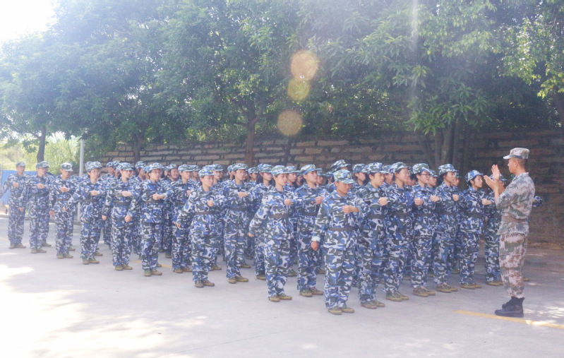 军训期间,教官们以身示范,依照计划对新生们进行一系列军事技能教学。经着装整理与军姿纠正后,新生们在教官们的指导下参与踏正步训练。伴着教官们的口令,新生们认真完成动作定型和正步摆臂练习,经熟练后踏着整齐划一的步伐,喊着响亮的口号,反复地练习“正步走”。在炙热的田径场上,一列列新生队伍保持着笔挺的军姿与雄厚的气势完成各项规定任务,并不断裨补缺漏,以加强训练效果。