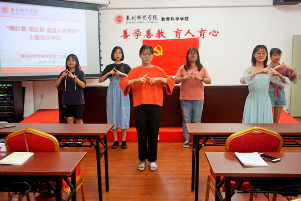 教育科学学院学生第二团支部党员同志手语表演国歌