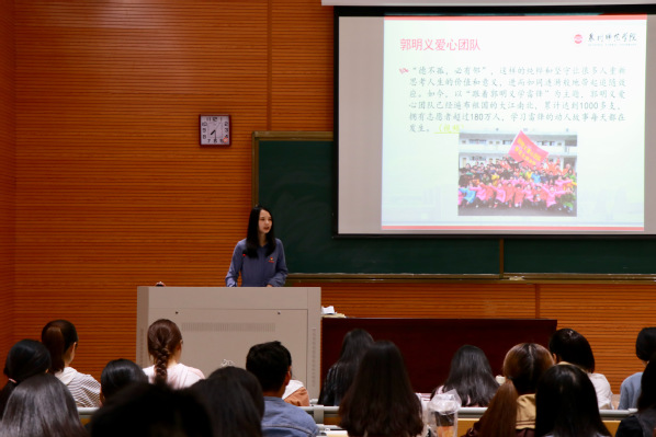 按照学校和学院党委关于召开“不忘初心、牢记使命”主题教育基层团支部工作要求,10月23日,教育科学学院学生第三团支部书记杨碧敏在学习调查研究的基础上,于特教大楼B108教室召开专题党课。支部全体党员、开展对象和入党持续分子参加。