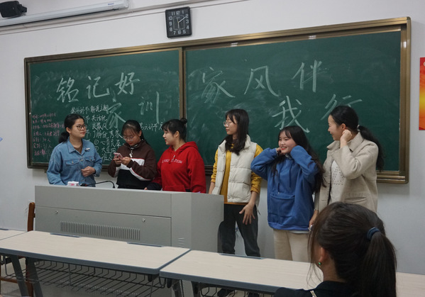 为弘扬中华民族传统文化,培育大学生良好的道德风貌,12月15日晚,教育科学学院各专业班级于特教大楼召开“铭记好家训 家风伴我行”主题班会。