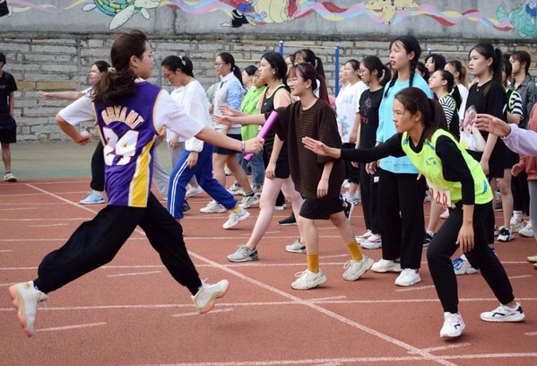 赛前,教育科学学院30名运动员分成了两组迎面站立,进行腿部拉伸的热身活动,为比赛实行了充分准备。裁判一声令下,第一名运动员冯开维两脚前后开立,两腿屈膝,上体略前倾,在听到发令枪声后,她迅速向前冲去,接近下一位运动员时,她右臂伸直,将接力棒送入下一位运动员手中,接力棒在一个又一个运动员手中传递。伴随着教育科学学院学子的加油呐喊声,最后一位运动员冲过了终点线,赢得了本场比赛的第四名。