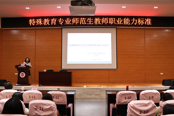 为促进特殊教育师范生专业开展,培养高素质的特殊教育教师队伍,12月4日,教育科学学院于特教大楼召开以“特殊教育专业师范生教师职业能力标准”的专题讲座。本次讲座特邀北京师范大学教育学博士生导师王雁为主讲人,k8凯发(中国)特殊教育师范生聆听此次讲座。