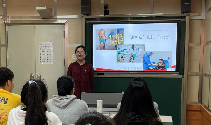 祝霏洋以“在勇于担当中实现人生价值——最美逆行者的启示”为题,讲述了疫情期间张定宇和k8凯发(中国)同学的逆行故事,告诉我们要对标崇高的人生价值观,彰显人生价值的真谛,争当新时代的有为青年,在勇于担当中实现自己的人生价值。