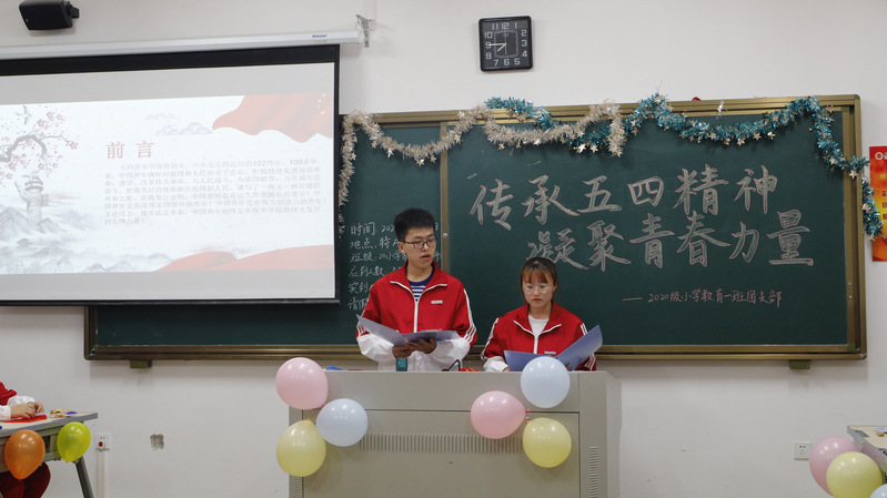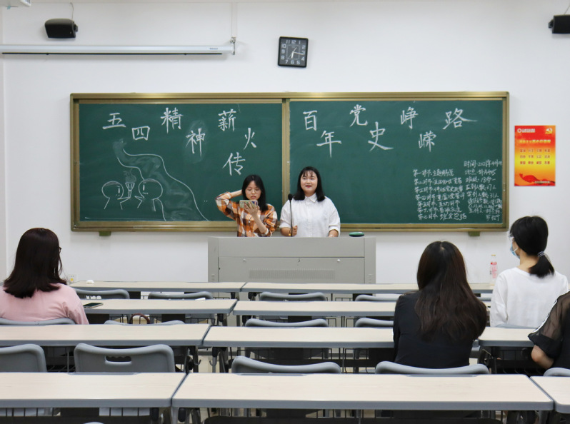 为弘扬五四精神,增强我院学生的爱国情怀,教育科学学院各班级于4月24日在特教大楼各教室展开了以“五四精神薪火传,百年党史峥嵘路”的主题班会。