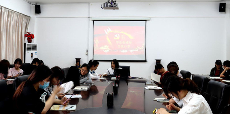 学生会主席团工作人员郑晓萍主持学习研讨会