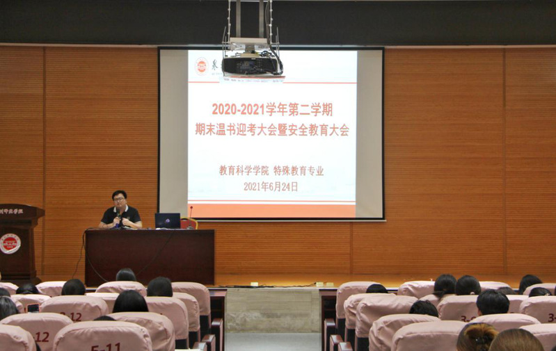 6月24日下午,教育科学学院特殊教育专业辅导员张甲玉老师在特教大楼第二学术报告厅召开期末温书迎考大会暨安全教育大会,特殊教育专业全体学生参加。
