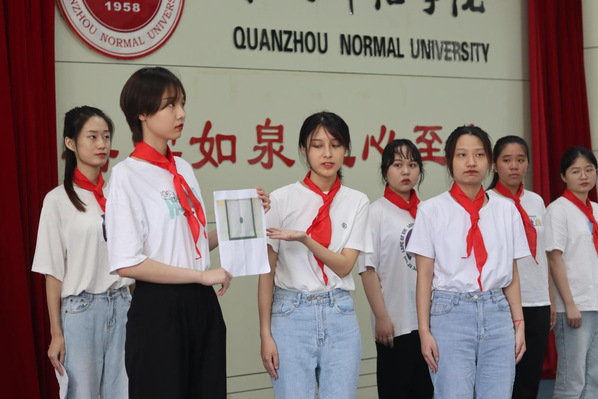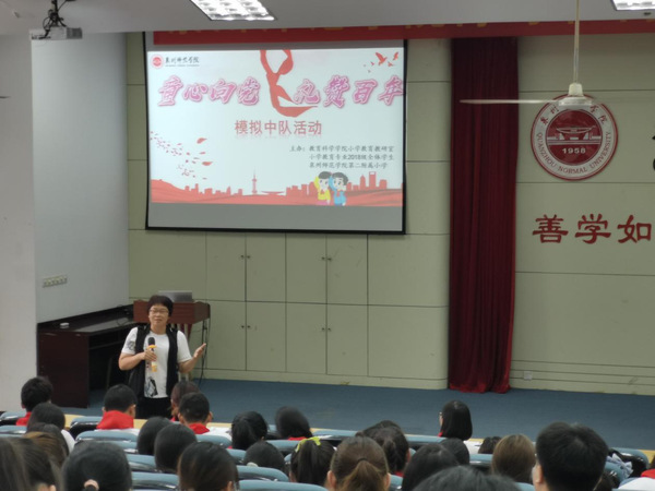 为了庆祝中国共产党创建100周年,进一步有助于党史学习教育落实落细,6月25日,教育科学学院在中山报告厅召开庆“七一”模拟中队系列活动。本次活动由教育科学学院教工第一团支部和教育科学学院学生第一团支部举办,小学教育专业老师黄青青指导。