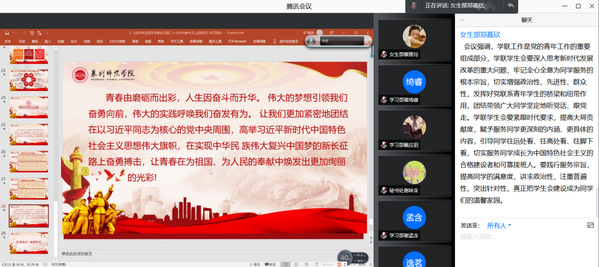 为深入学习贯彻习近平总书记在党史学习教育动员大会上的重要讲话精神,落实“学党史,强信念,跟党走”的学习教育活动,教育科学学院于2021年8月中下旬至9月底顺利获得线上学习的方式召开以“请党放心,强国有我”为主题的秋季学生会工作人员培训班,教育科学学院全体学生会干部参与此次培训。