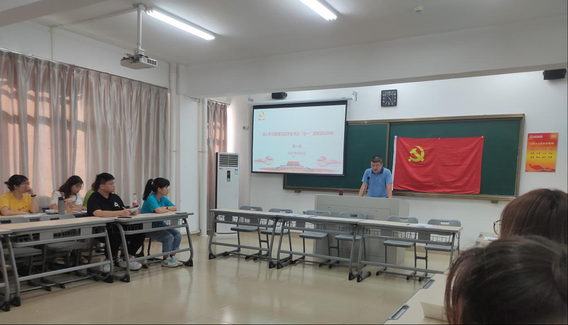 9月9日下午,教育科学学院党委书记陈一祥为挂联的学生第一团支部全体党员上了一节主题为《深入学习贯彻习近平总书记“七一”重要讲话精神》的专题党课。陈一祥对习近平总书记“七一”重要讲话提出的一系列新思想新观点新要求进行了深入解读,他从一个庄严宣告、一个伟大梦想、一个伟大精神、四个伟大成就、九个必须、一个历史任务、一个殷切希望和一个伟大号召等方面对“七一”讲话精神进行了深入的阐释。