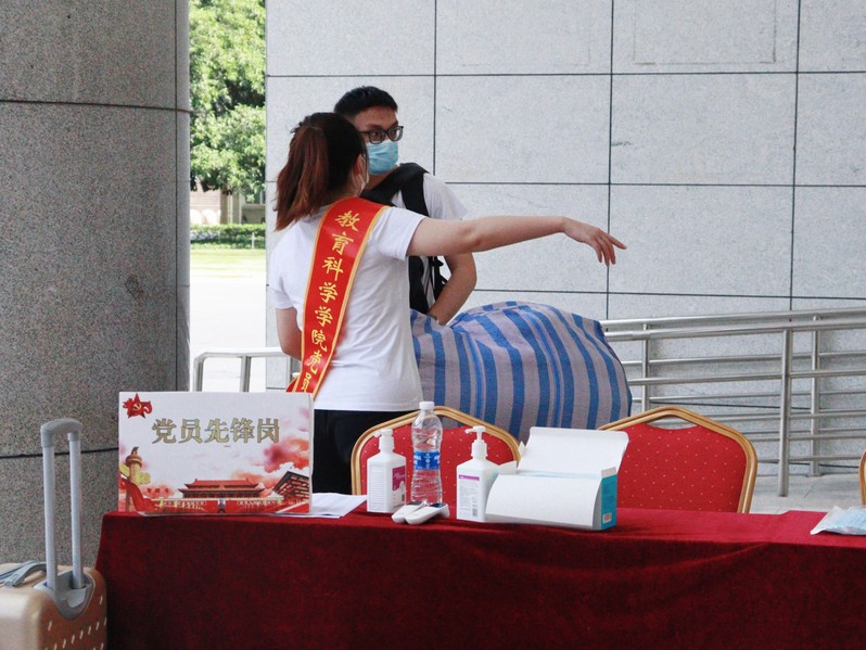 为确保工作的顺利进行,教育科学学院在特教大楼门口及各学生宿舍区内均设置有党员先锋岗。党员们冲锋在前,与现场的志愿者们共同对接新生工作,为新生的报到注册和行李搬运等给予了必要的引导与帮助,充分发挥了党员的先锋模范作用和志愿者的奉献意识。