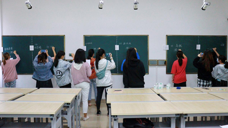 本次比赛共92名学生参与,所有参赛学生按照六人一组进行分组后,在限定时间内独立完成一首古诗的书写,由赛场工作人员进行录像及计时。比赛过程中,每个选手都努力把握一笔一划的书写力道,凝神聚气、认真专注地完成古诗书写,凭借稳定的参赛状态展现了扎实的基本功,力求将每个汉字书写得端正大方、舒展有力,将自身水平发挥到极致。随着时间的流逝,比赛接近尾声,参赛选手们用精湛的书写技能呈现了一场精彩的粉笔字比拼盛宴,所书写的粉笔字笔风各具特色,有的遒劲刚毅,有的飘逸舒展。整个比赛场面紧张、有序,氛围浓厚。