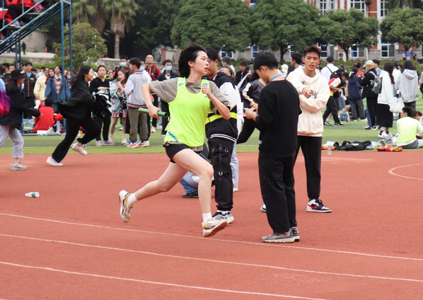 团结一心,奋力拼搏 ——记教育科学学院学生参加女子甲组4×400米接力赛预赛