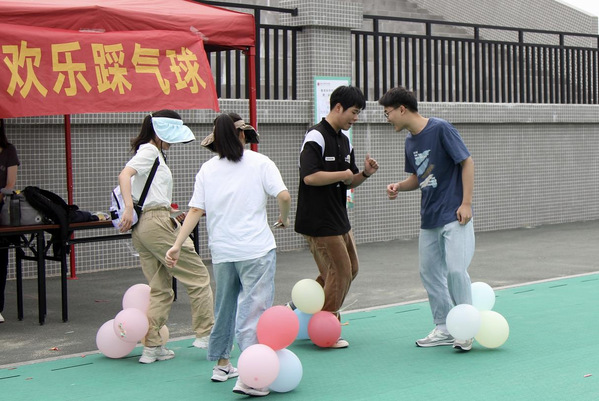 本次趣味运动会共设置了“夹弹珠”、“两人三足夹球跑”、“传呼啦圈”、“吹乒乓球”、“定点投掷”、“企鹅漫步”等多个新颖有趣的游戏项目,各项比赛分散在学校田径场、特教大楼、中山广场、白宫和陈祖昌大礼堂等地。游戏过程中,参赛选手们本着“健康向上、不懈奋斗”的竞技精神,互相鼓励,团结协作,在游戏中享受乐趣、增强体质、锤炼意志。游戏最后,参赛同学根据所得积分参与不同等级奖池的抽奖。