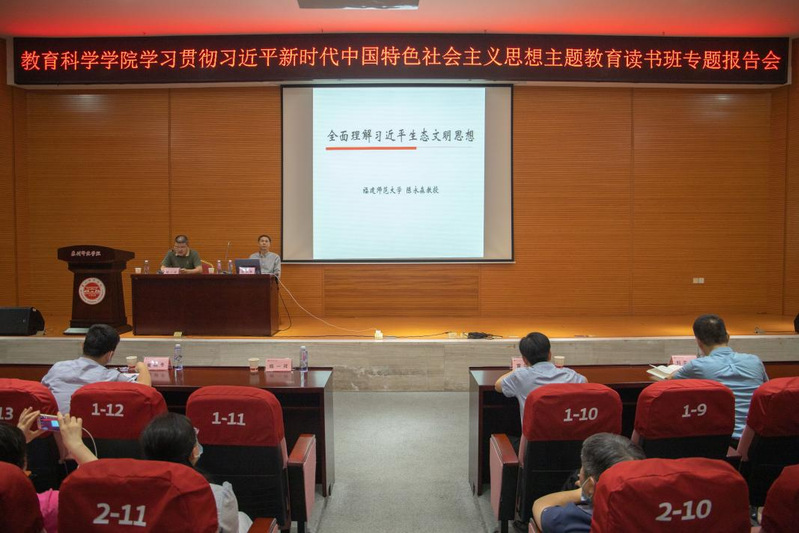 5月18日,教育科学学院举办学习贯彻习近平新时代中国特色社会主义思想主题教育读书班专题报告会,邀请福建师范大学马克思主义学院博士生导师陈永森教授作题为《全面理解习近平生态文明思想》的专题辅导。院主题教育读书班全体成员、师生党员代表、部分入党持续分子参加辅导报告会。报告会由院党委书记陈一祥主持。
