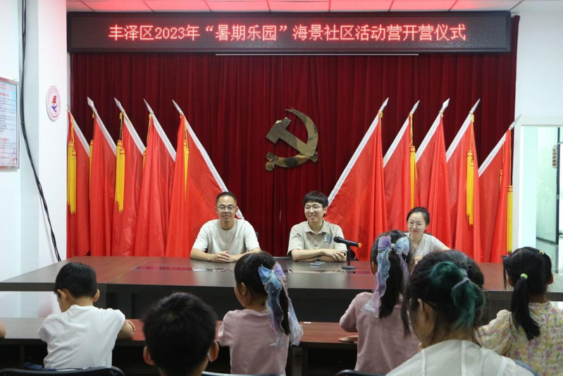 7月10日,暑期社会实践开营仪式在海景国际社区举行。海景国际社区负责人、教育科学学院“通文知理”暑期社会实践服务队和“‘泉’心同行”暑期社会实践服务队一同参加本次开营仪式。