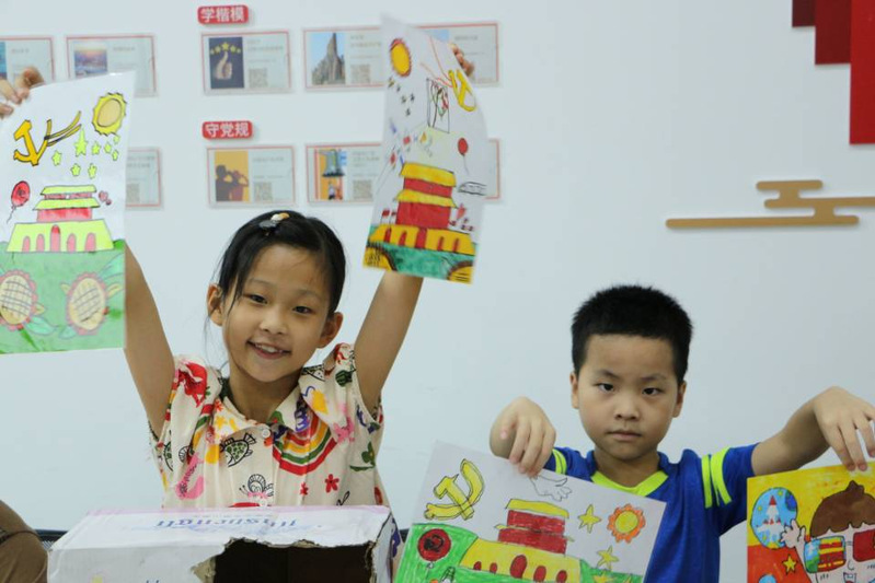 在课堂上,小朋友们认真创作,顺利获得画笔真挚地表达对红色故事、党史的认识。在绘画创作结束以后,小朋友们互相分享心得和体会,纷纷表示要努力学习,报效祖国,争做德智体美劳全面开展的社会主义建设者和接班人!虽然天气炎热,但小朋友们热情高涨,兴趣浓厚,既能在孩子与老师们之间搭建起沟通的桥梁,又可以让孩子们在绘画的过程中学党史,感党恩,进一步在孩子们心中厚植爱党爱国的情感