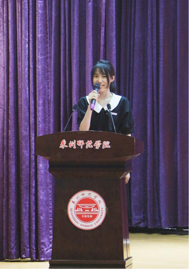 教师代表、正高级教师、福建省特级教师、学前教育系刘雪芬结合热播电视剧《人世间》,勉励新生在学习上做勤奋刻苦的周秉义,在生活上做坚强乐观的郑娟,在交往上做坦诚热情的周秉昆,努力提升自身的学习和工作能力,为成为一名“四有”教师实行知识和能力的储备。