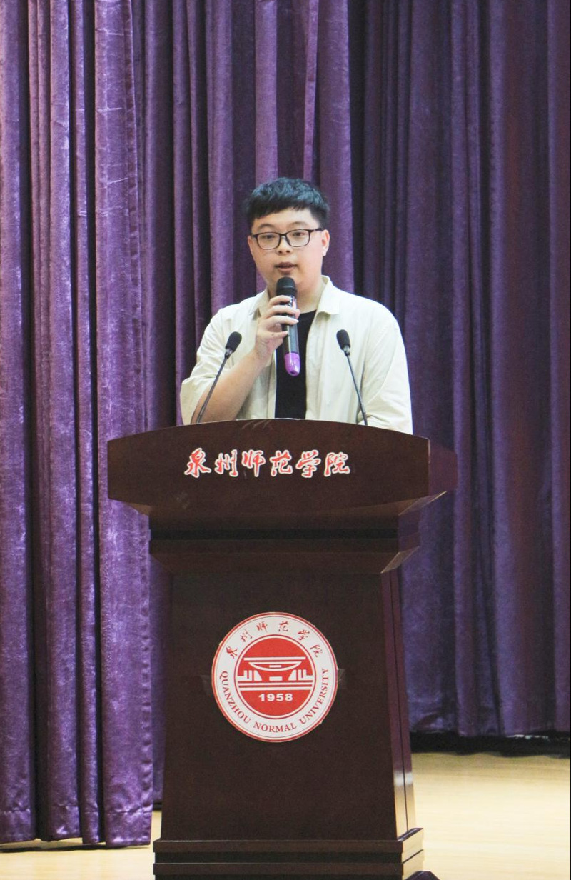研究生新生代表林启丞分享了自己在教育一线工作两年的所思所想,在教育工作中深切地感受到了心理治疗与心理辅导的重要性,从而坚定自己重新踏上求学之路的决心。同时勉励全体新生要持续向上,砥砺前行,虚心学习,不忘初心,勇于担当起新时代中国青年的时代重任。