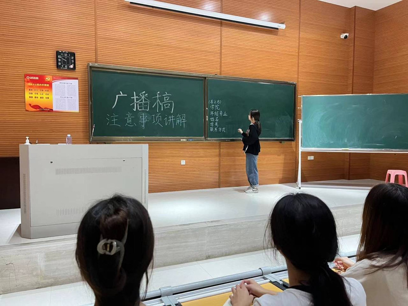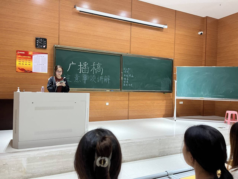 会上,宣传部负责人杜晨怡第一时间强调了本次运动会广播稿征集的重要性,各班宣传委员实行对班级同学的宣传动员,鼓励班级同学持续参与,并强调各班宣传委员应以身作则,持续鼓励同学撰写广播稿,严格把关,提高稿件质量。此外,负责人还详细说明了广播稿的格式、缴交时间、评选要求及奖惩制度等各项交稿细节,