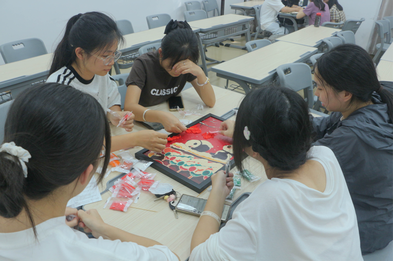 活动内容丰富多彩,独具创意。第一时间进行了肌理画创作环节,同学们充分发挥想象力,以画笔为媒介,用色彩和线条表达了对祖国的美好祝愿。随后,emoji猜词游戏将现场气氛推向高潮,同学们分组进行比拼,既考验了团队协作能力,又展现了新时代青年的幽默与智慧。