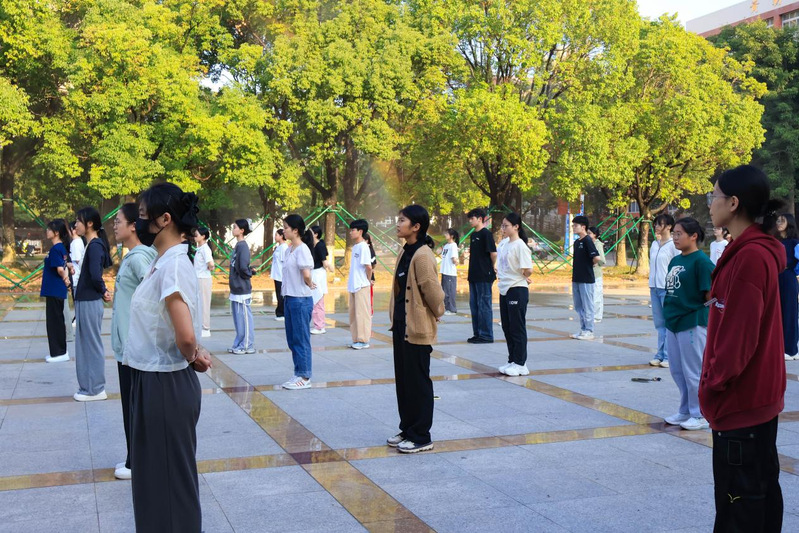 学子们热情高涨,持续参加早训和晚训,全身心投入到体能训练与广播操姿势的细致调整中。尽管训练时间紧迫,他们仍以认真的态度对待,动作整齐划一,时刻呈现出精神饱满的姿态。他们昂首挺胸,跟随音乐节拍,在学长学姐的带领下,动作整齐有力。抬手、弯腰、转身、伸展、侧身…… 每一个动作都精准到位,尽显青年朝气蓬勃的精神面貌,为校园增添了一道亮丽的风景线。