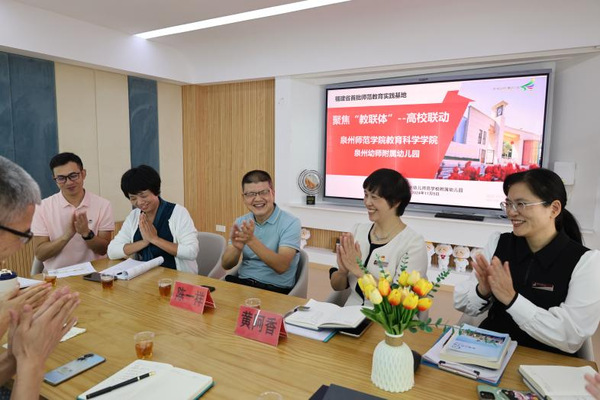 为强化教师教育协同育人机制改革,加强学前教育专业质量建设,提升人才培养质量和学生就业竞争力。近期,教育科学学院组织与泉州幼儿师范学校附属幼儿园召开联合教研暨访企拓岗促就业活动。教育科学学院党委书记陈一祥,福建省特殊教育资源中心办公室常务副主任邓岳敏,学前与老年教育系系主任叶增编、教研室主任沈娟等,以及学前教育专业22级学生参加活动。泉州幼儿师范学校附属幼儿园团支部书记、园长黄阿香,副园长杨荣斌携相关教师陪同观摩并召开联合教研活动。