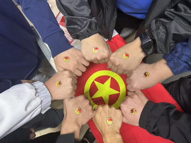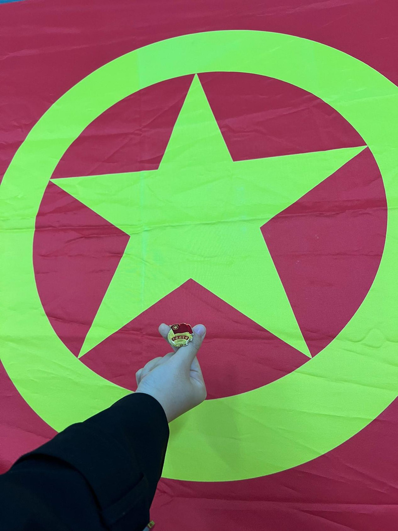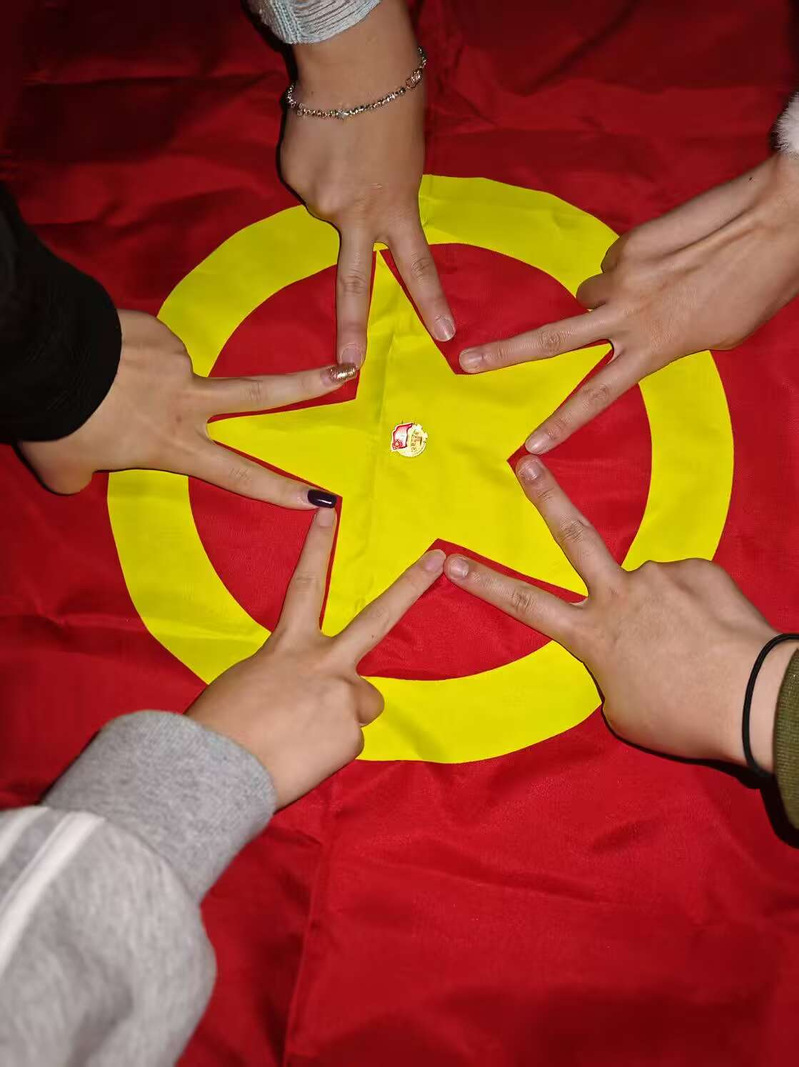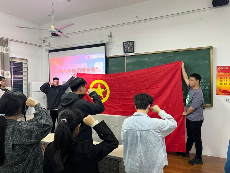 各活动现场,团旗飘扬,团徽闪耀,学子们结合专业特色,用镜头记录下一个个充满仪式感的瞬间。教科学子们与团徽和团旗并肩而立。当指尖轻轻触碰团旗的红,目光与团徽的光芒交汇,那一刻,仿佛听见百年前的呐喊穿越时空。五四的火炬,点燃了青春的热血,而团旗和团徽,便是青年信仰的图腾。右手紧握拳头,于团旗下庄严宣誓,誓言字字铿锵有力,直击心灵深处,那一刻,青春的热血在胸中沸腾,信仰之光如灯塔般照亮前行的道路。