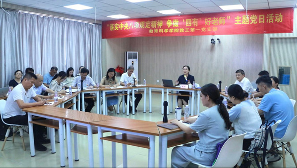在随后的“落实中央八项规定精神 争做‘四有’好老师”主题党日活动中,全体党员共同学习《党的十八大以来深入贯彻中央八项规定精神的成效和经验》,集体观看警示教育片。党员们立足实际,围绕“如何将作风建设转化为育人实效”展开热议,现场气氛活跃。陈秋燕对本次主题党日活动予以充分肯定,她勉励党员们要深入贯彻中央八项规定精神学习教育,持续加强作风建设,牢记为党育人、为国育才使命,争做“四有”好老师。
