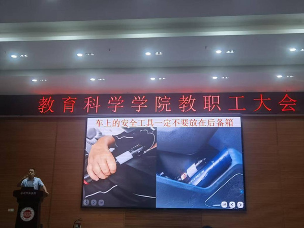 10月30日,教育科学学院“全民消防·生命至上”教职工消防安全月专题培训圆满收官。活动结合教职工大会,邀请泉州市子安应急服务郑劲捷教官担任主讲,全院数十位教职工参加。