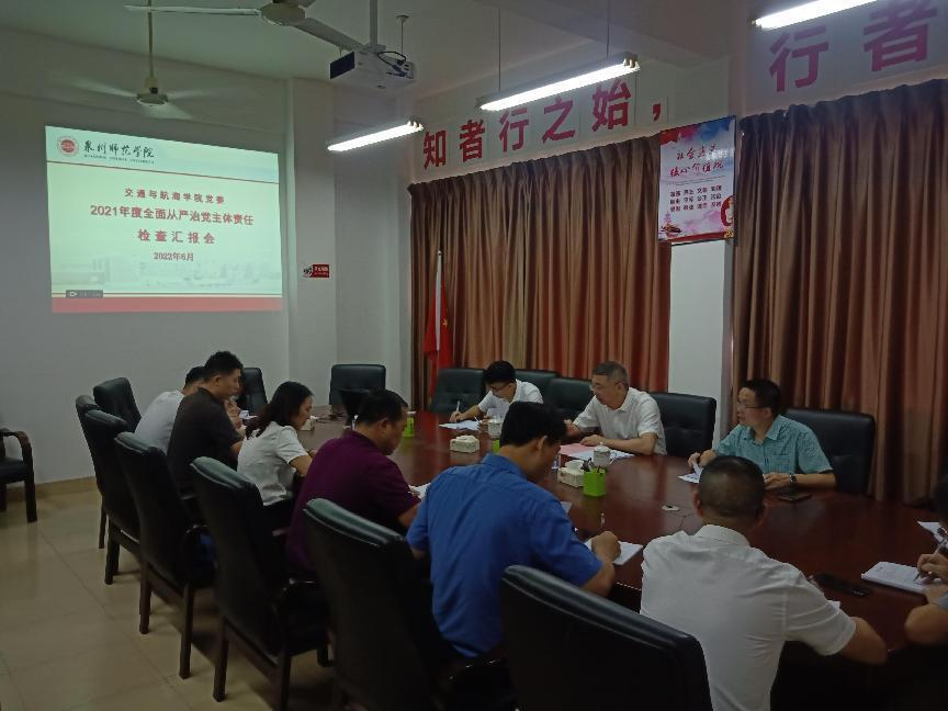 随后召开检查反馈会,黄江昆对交通与航海学院2021年度全面从严治党主体责任落实情况工作取得的成绩表示肯定,指出了工作亮点和不足,并代表校党委就落深落细落实全面从严治党主体责任提出四点要求:一要深刻认识“两个确立”的决定性意义,忠诚拥护“两个确立”,坚决做到“两个维护”,以更高的标准、更深的层次、更强的自觉有助于学习宣传贯彻习近平新时代中国特色社会主义思想走深走实;二要巩固拓展党史学习教育成果,建立常态化长效机制,持之以恒推进党史学习教育,持续聚焦主责主业,压紧管党治党责任链条;三要持续强化思想理论武装,严格落实意识形态工作责任制,牢牢把握意识形态工作主导权、主动权,加强宣传阵地管理,构建完善“三全育人”体系,做实师生思想政治工作,维护校园安全稳定;四要持续营造风清气正的良好政治生态,将省委提出的“三提三效”提高效率、提升效能、提增效益落实到位,全面推进特色鲜明的一流应用型大学建设,以实际行动迎接党的二十大胜利召开。