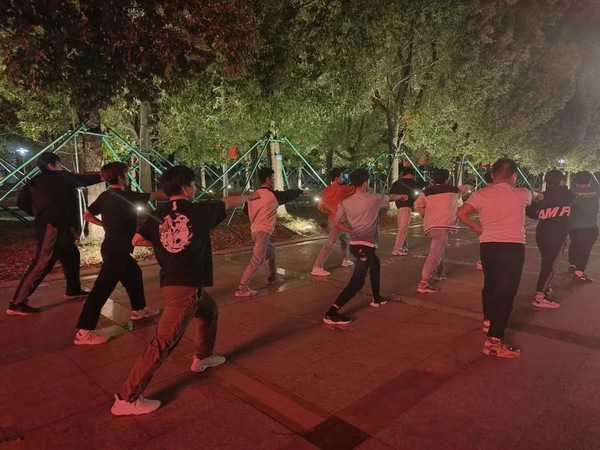 “喝,哈!”活力的呐喊声响彻云霄,挺拔的身躯抵御料峭寒,让人在晚秋的清晨中也不觉寒冷。