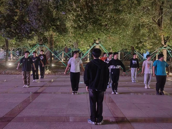 如今已是晚秋,众人期待的运动会也随之而来。近期阴雨绵绵,寒风瑟瑟。但表演队的同学们满怀激情,天色未明便早起训练。