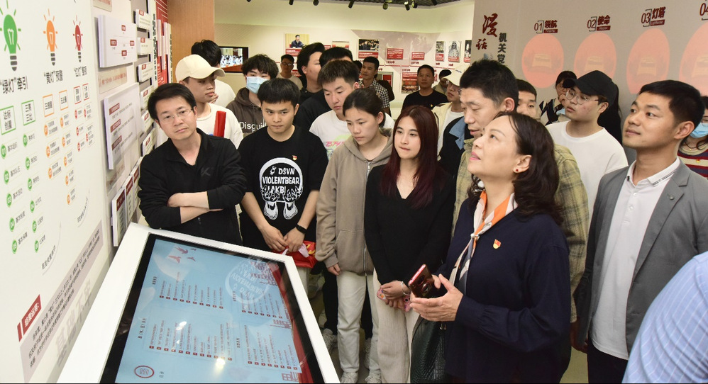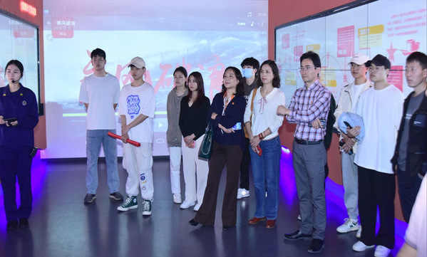在党建体验馆,同志们认真学习领会了党的十八大以来,以习近平同志为核心的党中央对加强和改进机关党建工作的系列重要论述和重大部署,沉浸式体验了党在战争年代艰苦卓绝、浴血奋斗的光辉历程,饶有兴趣地观看了各地富有特色和成效的党建工作生动实践……进入宣誓区,在学院党委书记陈霞红同志的带领下,全体师生党员举起右拳面向党旗庄重宣誓:“我志愿加入中国共产党,拥护党的纲领,遵守党的章程,履行党员义务,执行党的决定...”表达对党忠诚、全心全意为人民服务的坚定决心。