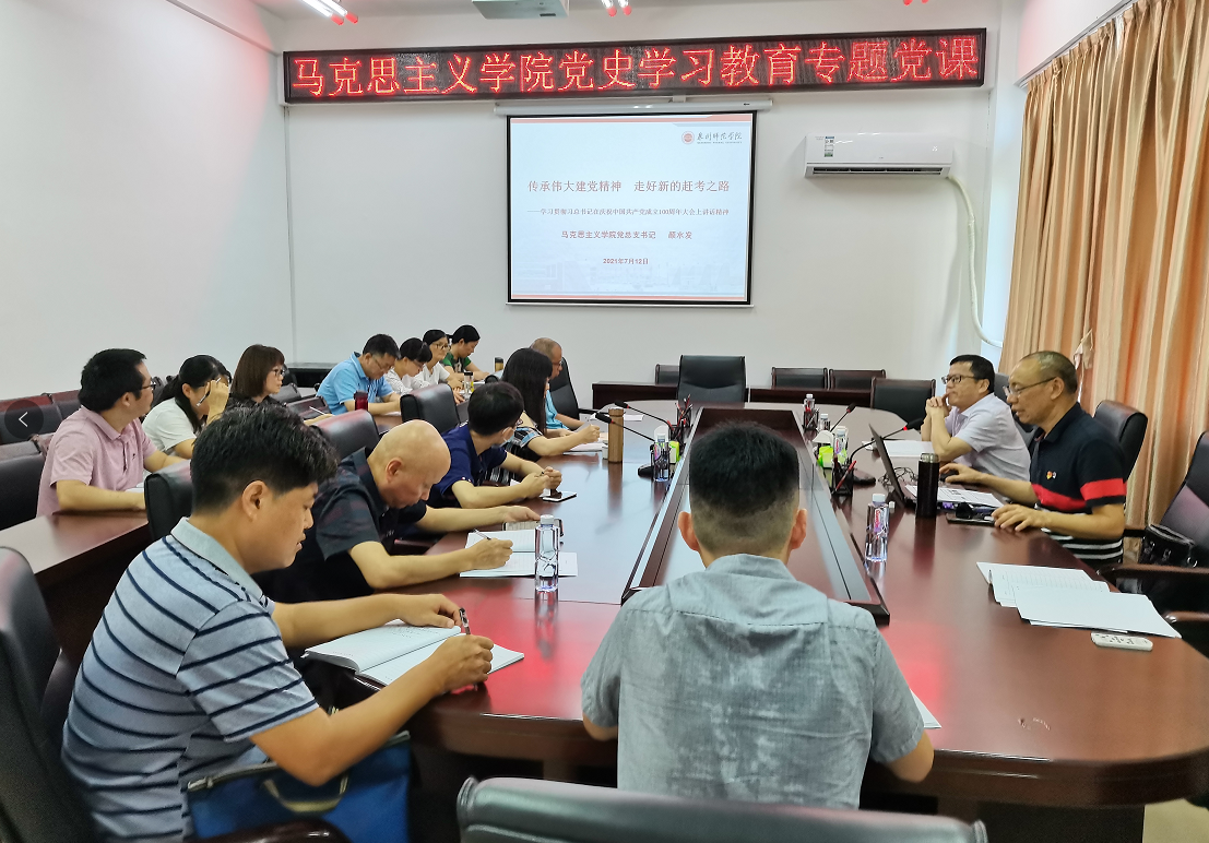 2021年7月13日,马克思主义学院党总支书记颜水发研究员以《传承伟大建党精神 走好新的赶考之路》为题,给全院党员上了一堂党史学习教育专题党课。