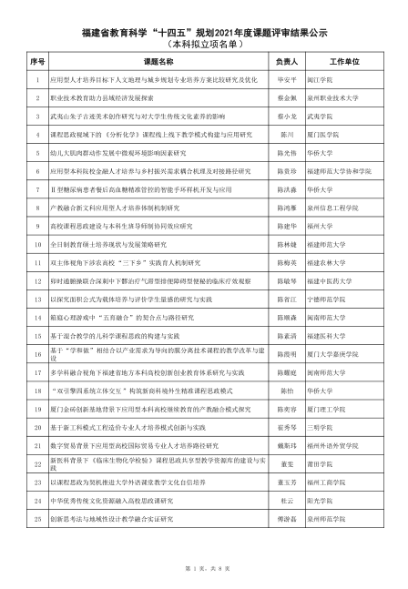 福建省教育科学“十四五”规划2021年度课题评审结果公示