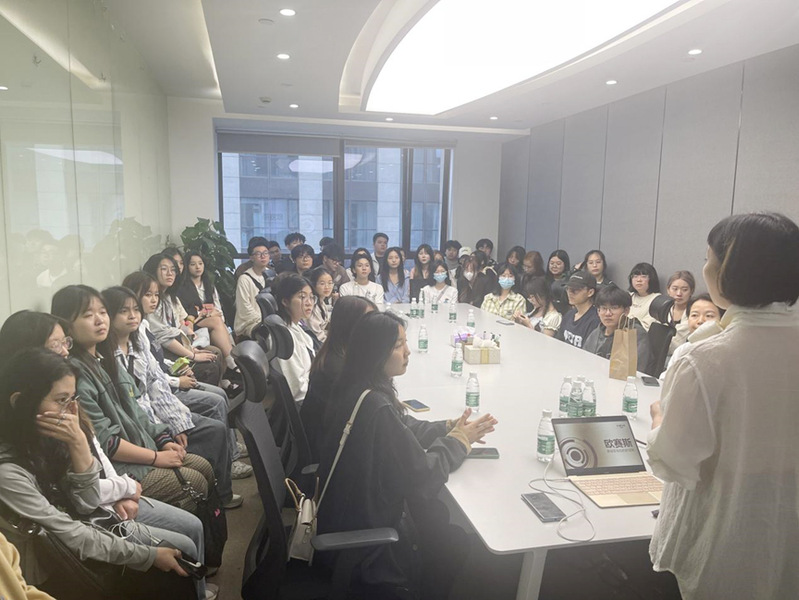 本次的访企拓岗活动还有20、21级视传专业学生参与,在分享座谈会上,欧赛斯平台运营总监Eva以欧赛斯为例,将实践结合理论培养咨询顾问的体系化方法,延伸至如何践行终身学习的信仰。本次访企拓岗的座谈会让同学们受益颇多,大家都深刻认识到大学与职场的不同,对于未来如何根据自己的优势做职业规划也因此有了初步想法。
