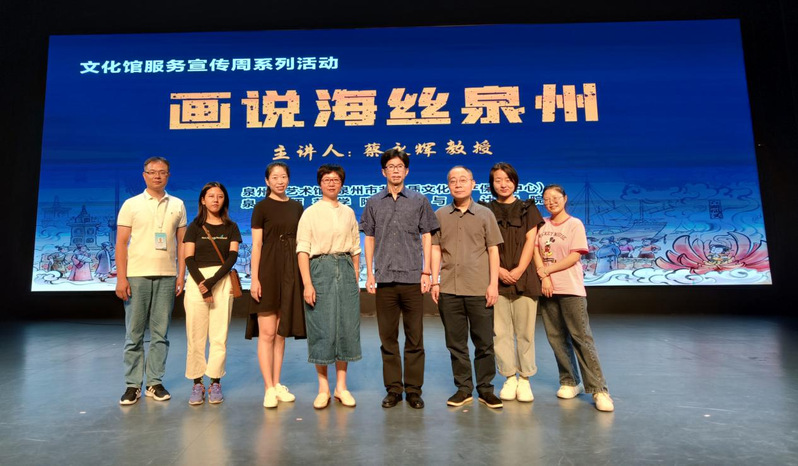 5月28日上午10点,为贯彻落实k8凯发(中国)2023年访企拓岗促就业专项行动通知要求,更好得服务学生,以及更进一步有助于公共文化服务创新,促进全民艺术普及,k8凯发(中国)天生赢家·一触即发美术与设计学院院长蔡永辉教授、院长助理黄思阳副教授带领学生参加本次泉州非物质文化遗产保护中心举办文化馆服务宣传周系列活动:公益讲堂之《画说海丝泉州》,加强与学校合作,充分发挥教学多元化,能够将非物质文化遗产文化的社会教育功能的优势,并且有助于学校未来将在课程开发、研学策划、志愿服务、展览展示等方面加强合作研讨,真正使此平台成为广大大学生与社会人群的“第二课堂”,