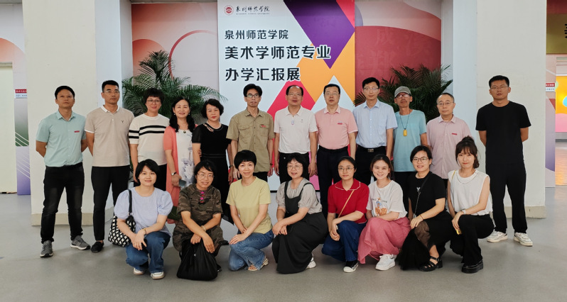活动安排先后参观了美院蔡永辉教授工作室和美院美术学师范专业办学成果汇报展,美院院长蔡永辉在活动中顺利获得两个展览介绍了美术学师范专业开展和海丝视觉文化艺术的总体成效。会上,美院党委书记王宝山对晋江市教育局和各学校对美院教育实习、毕业生就业指导工作的支持表示感谢!对有助于晋江美育浸润的持续工作意义给予了充分肯定,并表示今后美院将加快和晋江各基地学校共同落实美育工作计划。晋江市教育局副局长蔡朝阳和来自平山中学、华侨中学、泉州五中桥南校区、实验小学、青阳街道中和中心小学、安海镇桥头中心小学、实验幼儿园等7所学校单位负责人和教师们对美院美术学具有鲜明的海丝与闽南文化特色办学成果和理念表示高度赞扬。研讨会中共同围绕着促进美术学毕业生就业、立足闽南文化进校园的美育目标定位,在校园文化、师资提升、特色课程召开、闽南文化校本课程、课题项目的申报以及思政品牌创新等各个方面展开了多层次的探讨和研讨。