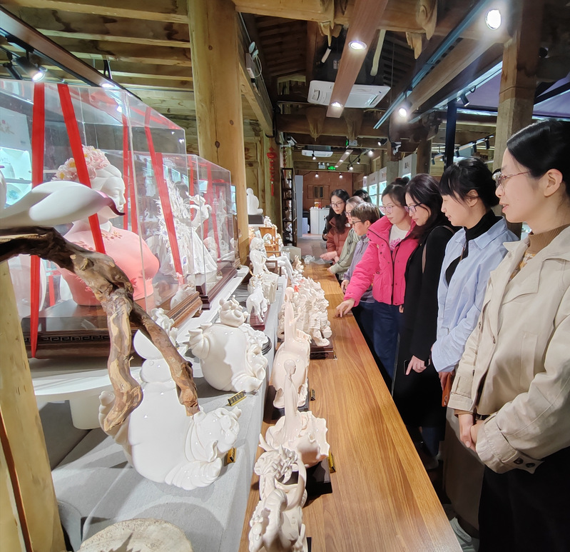 随后,大家来到晋江五店市传统街区,漫步其中,感受闽南建筑艺术,体验闽南非物质文化遗产。在瓷器展厅内,大家或俯身凝视,或轻声研讨,感受着陶瓷工艺的独特魅力,沉醉于作品所蕴含的匠心与巧思中。