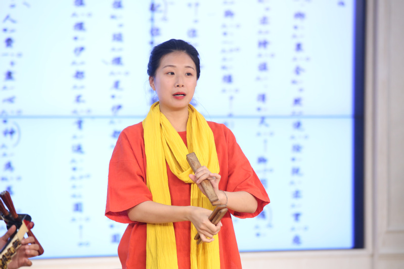 “南音传习”模块活动,是本次南音进校园活动的最重要任务。传习对象涵盖中国音乐学院附中不同专业、同年级的学生,也有该校的一些专业任课教师参与,分唱腔、琵琶、洞箫、三弦和二弦五个小组,各小组分别遴选4—6名成员进行传习。这一模块活动的传习成果便是“师生汇报音乐会”,在有限的传习时间内,高强度、高密度的传习安排,传习效果喜人,“师生汇报音乐会”由该校周慧老师领衔,为大家呈现了谱尾《绵答絮》(念嘴合奏)、四宝表演唱《直入花园》、独唱《风打梨》、对唱《感谢公主》、洞箫四重奏《踏雪寻春》、单箫独拍《鱼沉雁杳》和谱《梅花操》等节目的精彩表演。