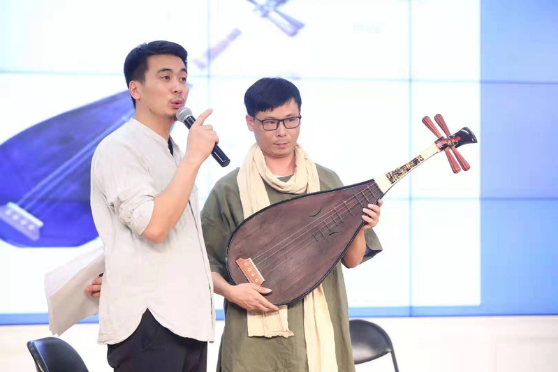 “讲座+音乐会”模块活动,题名为《南音——  一个可以聆听到古代音乐的乐种》。活动前半场,由泉州南音学院南音系林立策博士担任主讲,简要介绍了学界关于南音源流的几种论说,以及南音的音乐类型、表演程式、乐器编制等,并深入介绍、展示了每一件南音乐器的形制、音色、演奏方法和文化内涵等。活动后半场,由泉州南音学院南音系副主任、副教授、硕士生导师陈恩慧老师领衔,携蔡清雅和黄欣欣两位南音本科生,南音校友会陈祝平和郑江南两位优秀校友,以及特邀李建瑜和吴文俊两位民间南音传承人,遵照传统南音“指—曲—谱”的表演程式,表演了指尾《霏霏飒飒》、曲《莲步轻移》《一身》《感谢公主》、谱《梅花操》。这一模块活动,集南音理论讲解和南音表演实践于一体,两者互补说明,使大家可以较直观、立体地分析南音的基本面貌。