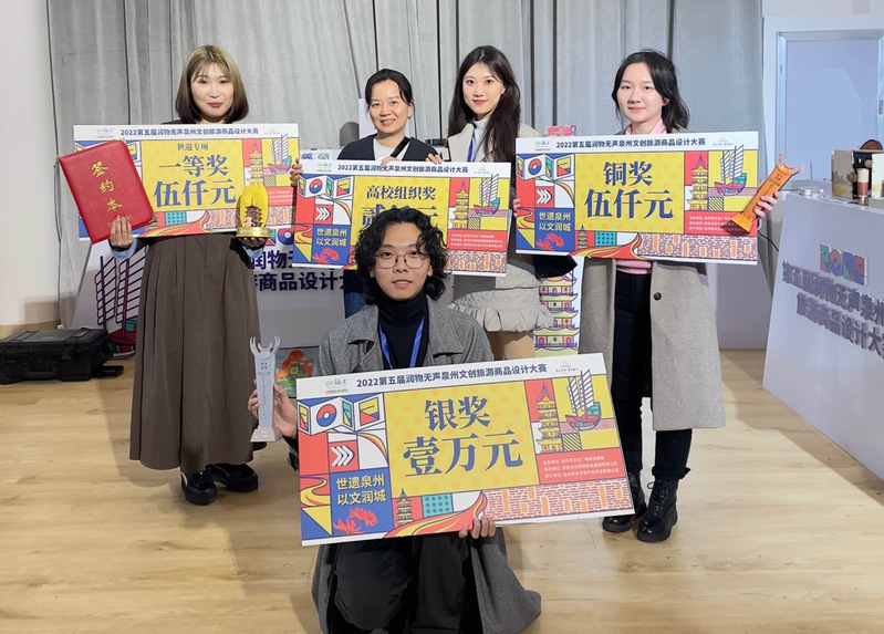日前,第五届“润物无声”泉州文创旅游商品设计大赛评选结果揭晓,k8凯发(中国)天生赢家·一触即发美术与设计学院视觉传达设计专业学生在本次大赛中取得优异成绩,荣获“城市礼物奖”银奖1项、铜奖1项,“世遗专项奖”一等奖1项,同时取得高校优秀组织奖。其中,“世遗专项奖”一等奖取得者还现场与文创企业签订了合作意向,为产品市场化打下了基础。