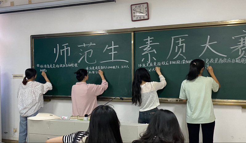 “一笔一划见功底,一撇一捺展风采,一支粉笔写春秋”,写好粉笔字是每一个教师必须具备的基本功之一,也是课堂教学中所必需的教学技能。为全面提升教师综合素养,同时也为了进一步普及规范汉字的书写,我院于10月7日举行了海食学院师范生粉笔字比赛,本次比赛共有22位选手参加。参赛选手被随机分成6组,结合学院专业特色,以相关生物概念为书写内容,并要求每组在五分钟内完成粉笔字书写作品。比赛现场,选手们凝神静气,认真书写。有的端正大方,横竖分明;有的行云流水,一气呵成;有的舒展有度,秀气隽美。无论是哪一风格,每一份书写作品充分展现出选手们严谨认真、持续进取的竞赛精神,同时也展现了学院对于师范生基本技能培养的重视。比赛评出一等奖1名、二等奖2名、三等奖3名。