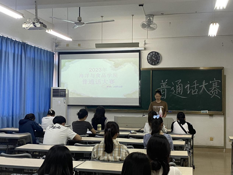 为贯彻落实《国家通用语言文字法》和《十三五语言文字规划纲要》,大力推广普及普通话,传承和弘扬优秀传统文化,传播语言魅力,提高师范生的普通话水平,海洋与食品学院10月12日召开了“师音同传,声声奋进”普通话大赛,比赛有两个环节,自我介绍与经典著作朗诵环节,这是对于师范生舞台表现力、普通话水平等能力的综合考量,选手们持续备赛,一个个都自信得体、举止大方、精神饱满、口齿清晰、字正腔圆,节奏张弛有度,用极具感染力的语言进显出较好的普通话水平,展现出师范生应有的精神面貌和素质水平。经过评委的讨论下评选一等奖1名、二等奖2名、三等奖3名。