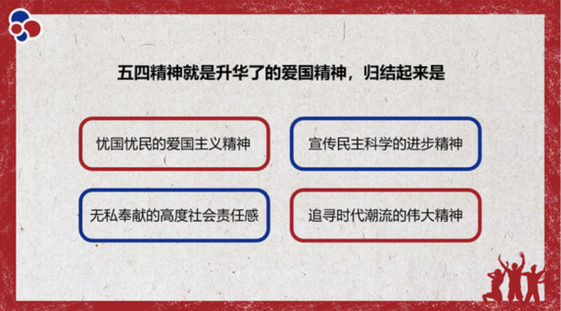 在本次团日活动中,三个班级的同学持续策划,让“爱国,进步,民主,科学”五四精神深深融入每位同学的血液之中。其中19数学1班的同学由具体事例向同学们阐释了五四精神的内涵,阐明五四精神的真谛,舍小我为大我,正是爱国精神的充分体现;19计算机班同学别具一格,进行了生动有趣的“青年之声”互动游戏和知识竞答,既激发同学们的学习热情,又深刻缅怀了五四先驱崇高的爱国情怀和革命精神;19物联网则根据五四运动的爆发和历史意义来解读五四精神的时代内涵,贴合时代主题,引发同学们更深层次的思考。