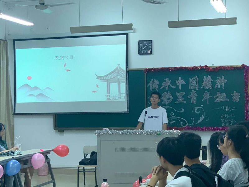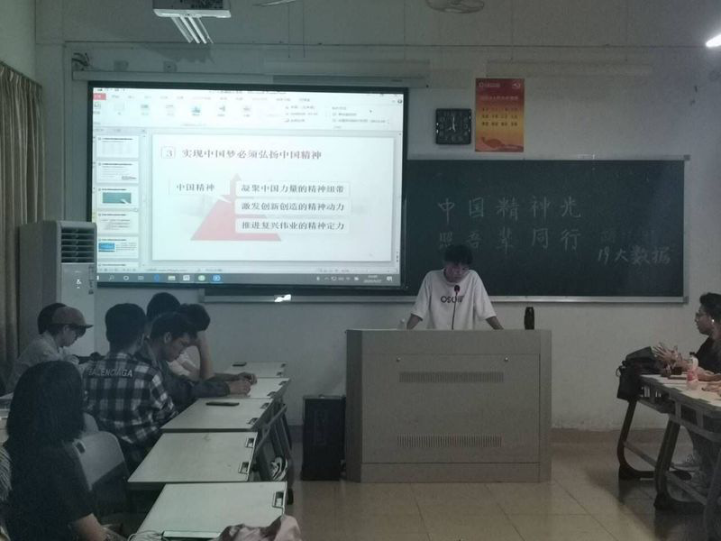 为深入学习贯彻习近平总书记在新冠肺炎疫情表彰大会上的重要讲话精神,引导同学们深刻领会“中国精神”的内涵,2020年9月27日,数计学院2019级各个班级在理工楼四楼教室举行“传承中国精神,彰显青春担当”主题团日活动。