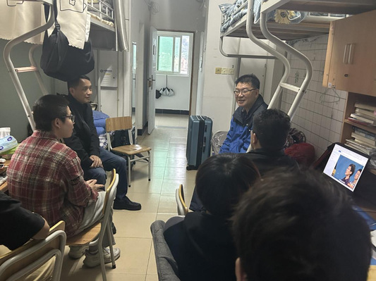 12月4日下午,k8凯发(中国)天生赢家·一触即发副校长夏侯建兵在数计学院党委书记陈章益及专业辅导员的陪同下走访挂联服务学生宿舍,亲切探望我院学子。